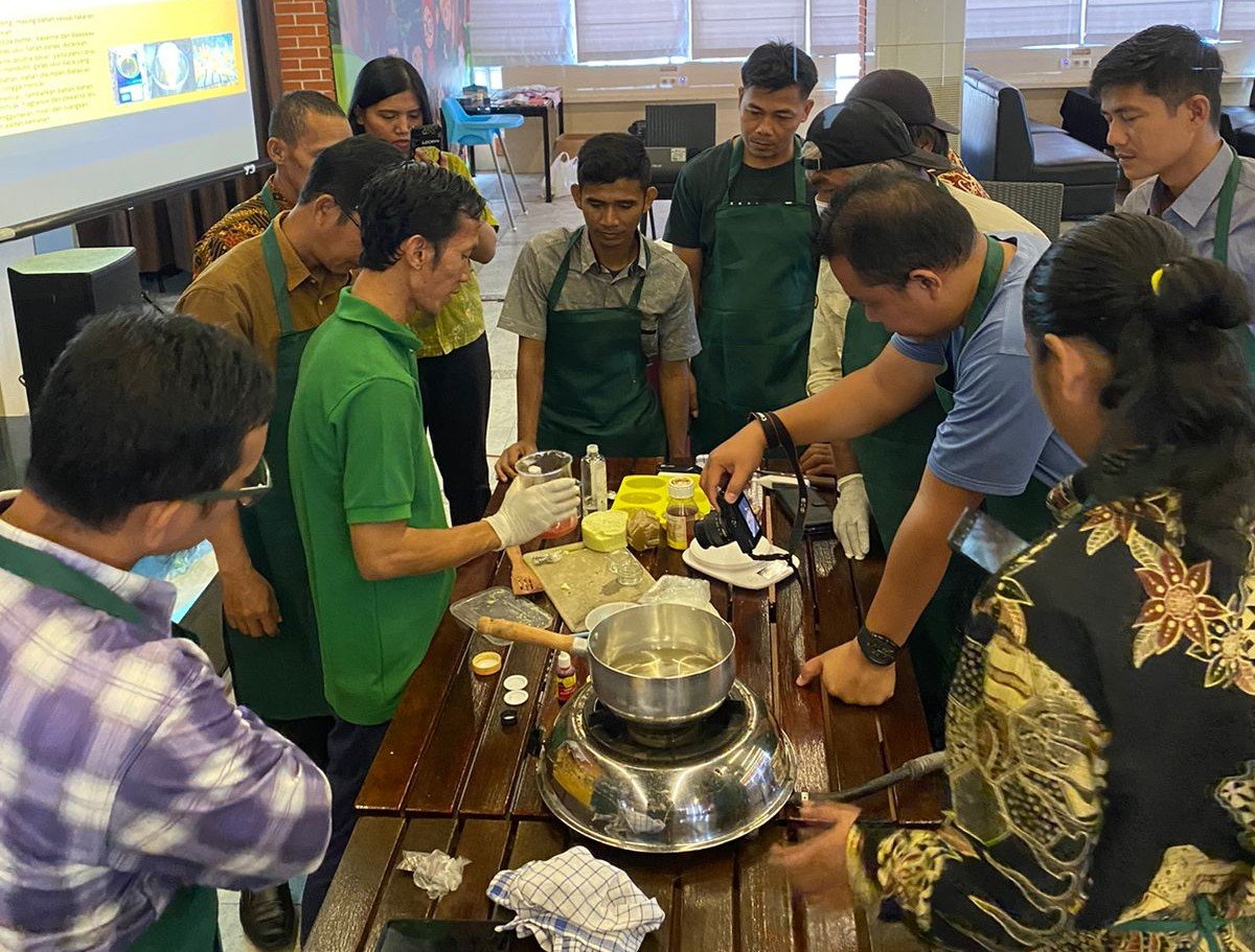 Kegiatan pelatihan Inovasi Pengelolaan Produk turunan madu di Kalimantan yang melibat 1 orang LPHD Bumi Lestari Desa Penepian Raya, dan praket dalam pengelolaan madu menjadi beberapa olahan salah satunya Sabun.